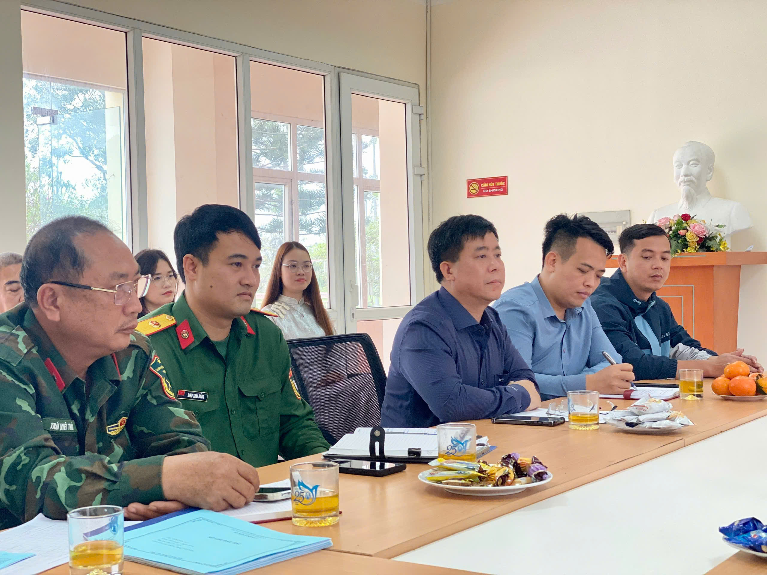 Tại buổi làm việc, Đoàn kiểm tra đã nghe ThS Nguyễn Anh Tuấn – Giám đốc Trung tâm báo cáo chi tiết về tình hình tổ chức đào tạo, giảng dạy các học phần Giáo dục thể chất (GDTC), Giáo dục quốc phòng và an ninh (GDQP&AN); công tác quản lý sinh viên; việc đảm bảo cơ sở vật chất, thao trường bãi tập; cũng như việc quán triệt, triển khai thực hiện các Nghị quyết, chỉ thị của Đảng trong toàn đơn vị.