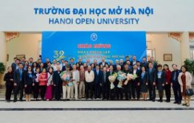 Lãnh đạo Viện Đại học Mở Hà Nội đón nhận những tình cảm của các đơn vị hợp tác